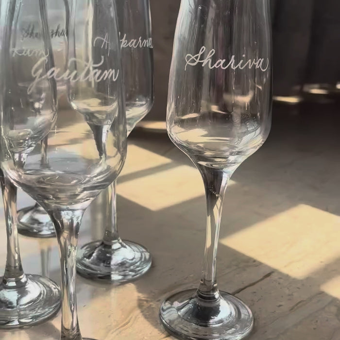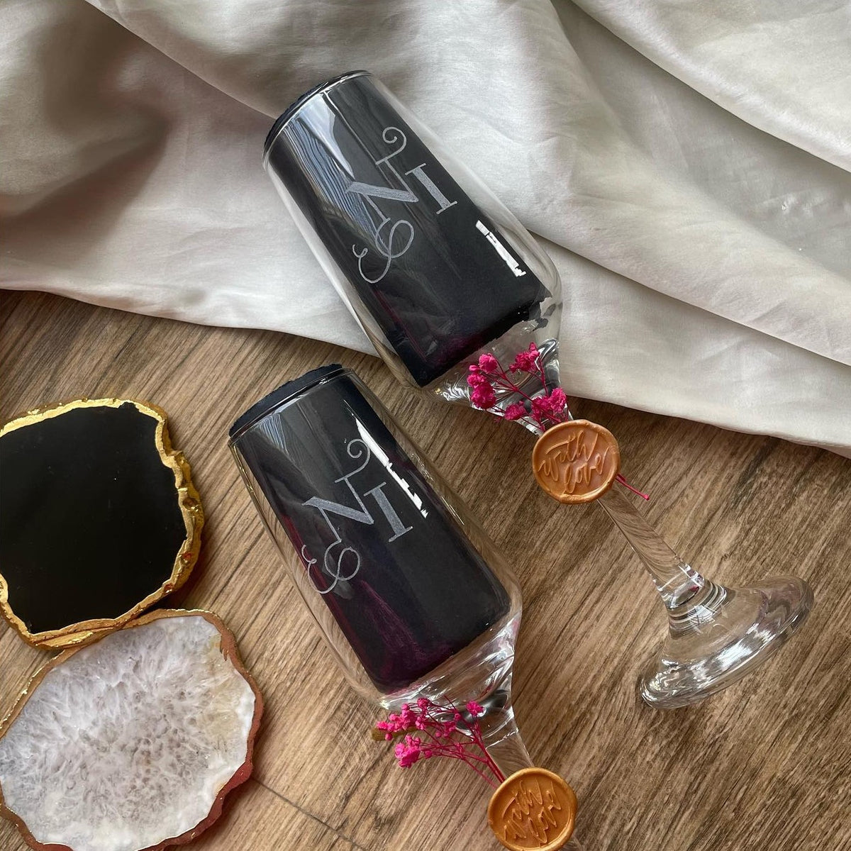 Celebrate love, milestones, and memories with our hand engraved champagne flutes. Your names, initials, or special dates delicately engraved by hand making it uniquely yours for your most cherished moments.
